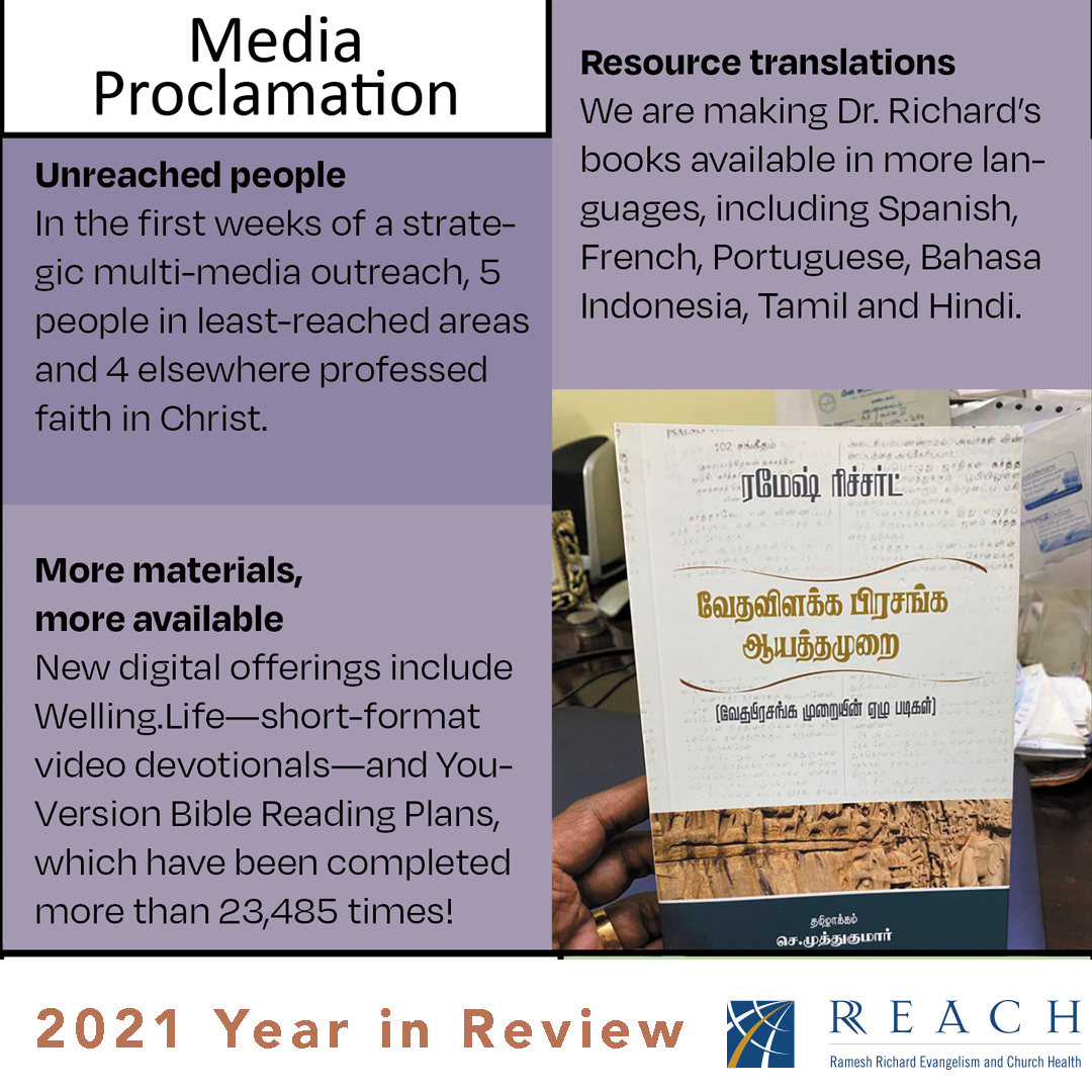 - Bible Reading Plan subscriber: The popular YouVersion Bible app houses hundreds of reading plans for users to discover and complete at their own pace. Using Dr. Richard’s articles and books, RREACH created 16 Bible reading plans, which were completed by subscribers more than 23,000 times in 2021.